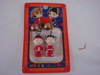 5cm , 此款需ㄧ次訂購12個240元. 百年好合結婚公仔 - - 商品一對是 2 個公仔吊飾 , 2 種款式混合出貨 > 成雙成對喜氣洋洋 , 每一對都有獨立包裝. ( 漂亮紙卡 + OP