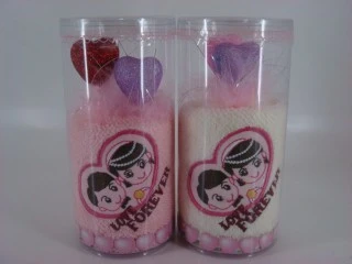 雙心圓筒結婚蛋糕毛巾 --- Q Q 的新郎新娘 ---尺寸:30 x 30公分 , 材質:100%純綿/ 透明盒裝 - .~ 創意毛巾設計 ~ 新款上市 給您親友一份喜悅與幸福的感動 -- 含圓
